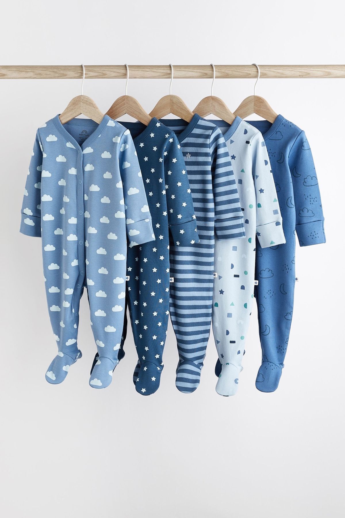 Next Baby % 100 Pamuklu Mavi Bulut Desenli 5’li Tulum Set
