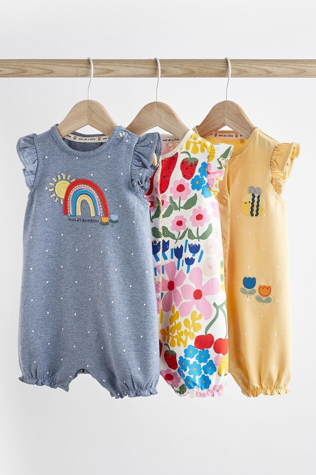 Next Baby % 100 Pamuklu Mavi Sarı Gökkuşağı Desenli 3’lü Romper Set