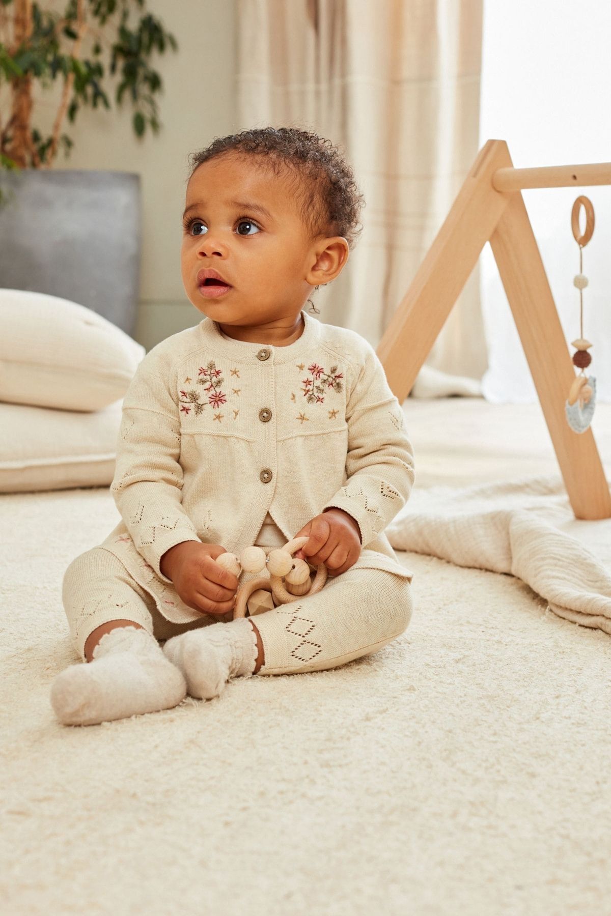 Next Baby Pamuklu Krem Çiçek Detaylı Örme Hırka Tayt Alt Üst Takım